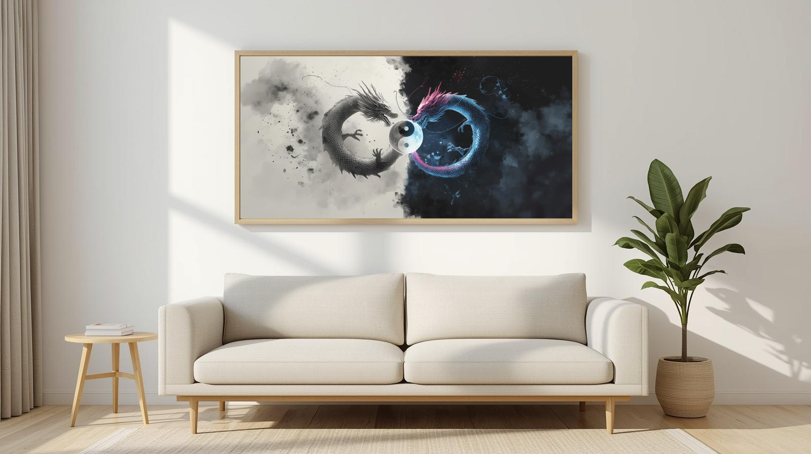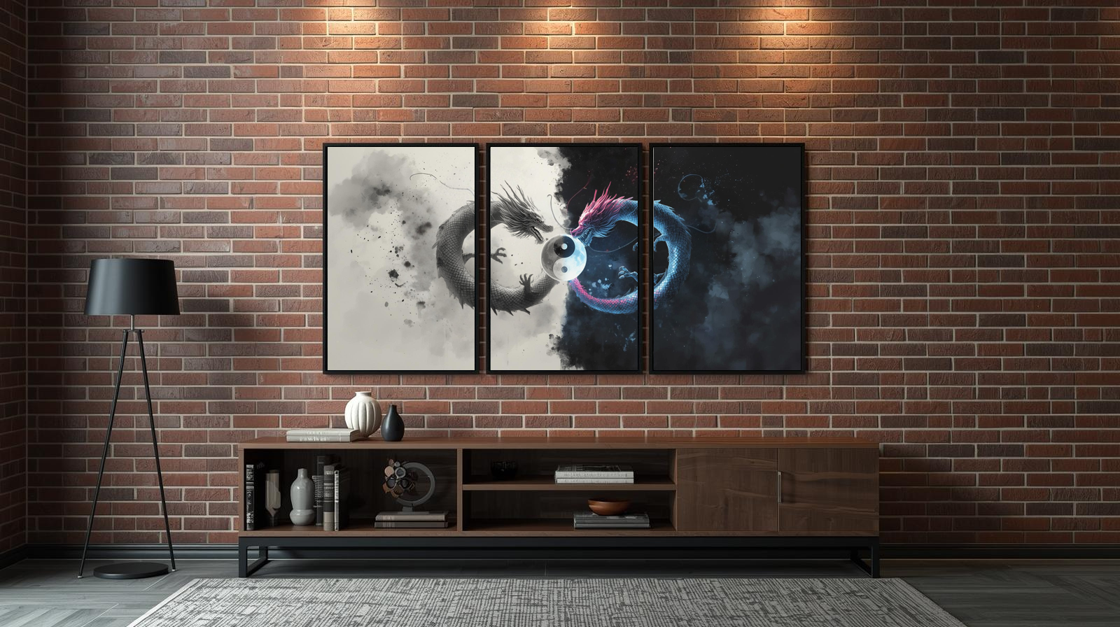 Bring the power of myth and harmony into your home with Mystic Serpents: Eternal Balance. This digital artwork portrays two dragons intertwined in a yin‑yang formation — one dark, one light — symbolizing the eternal dance of opposition and unity. With intricate scales, dynamic movement, and striking contrast, this piece embodies the timeless themes of balance, duality, and transformation. Perfect for fantasy lovers and seekers of symbolic art, it adds a bold, mystical presence to any space.